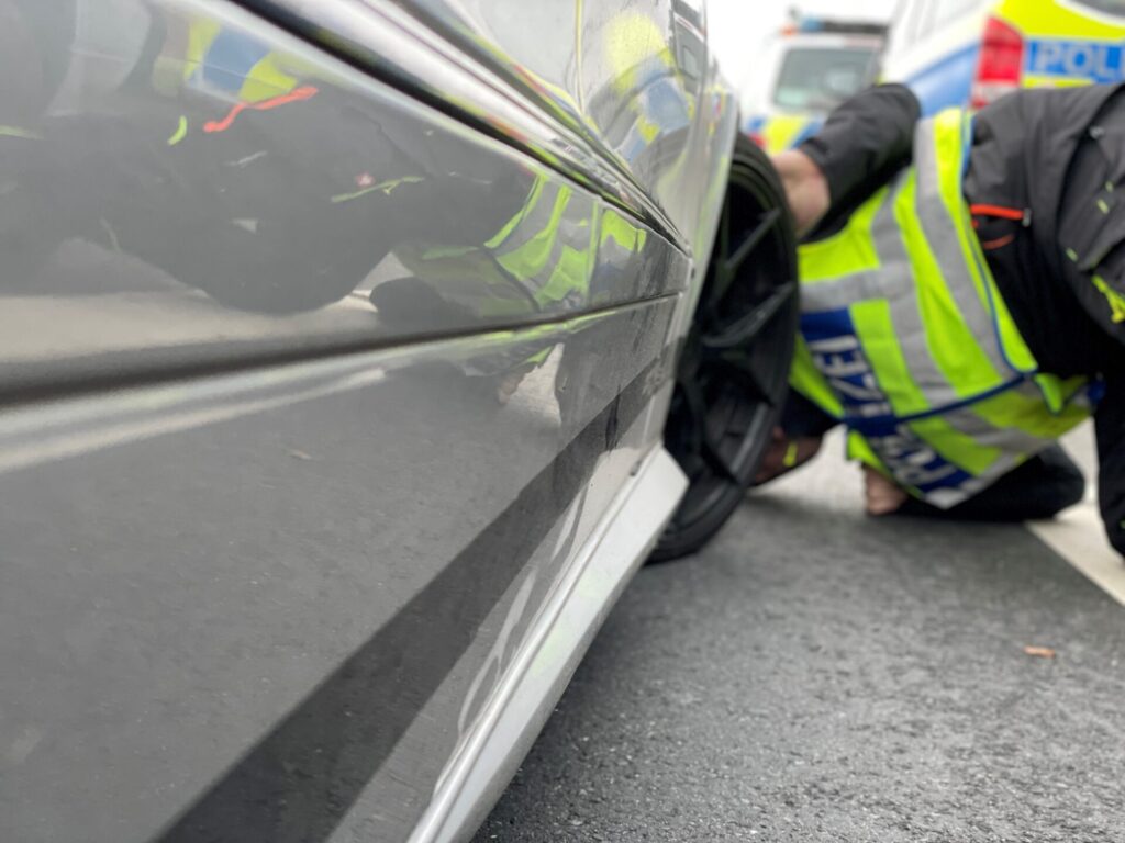 Kontrolle eines getunten Mercedes, der anschließend abgeschleppt wurde. Foto: PP Dortmund