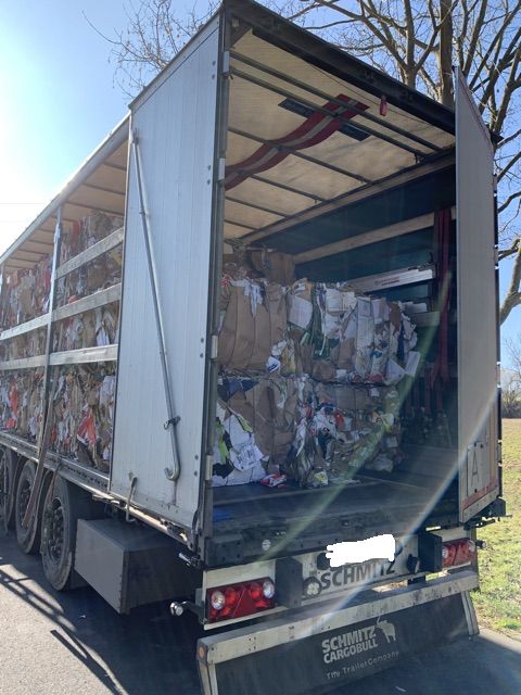 Darüber hinaus wurden noch Verstöße wegen des Verstoßes gegen die Ladungssicherung festgestellt. So musste zum Beispiel der abgebildete Lkw die nicht ausreichend gesicherten Altpapierballen mit zusätzlichen 11 Spanngurten nachsichern, bevor er weiterfahren durfte.
