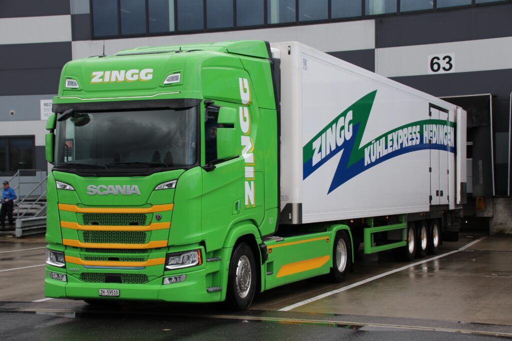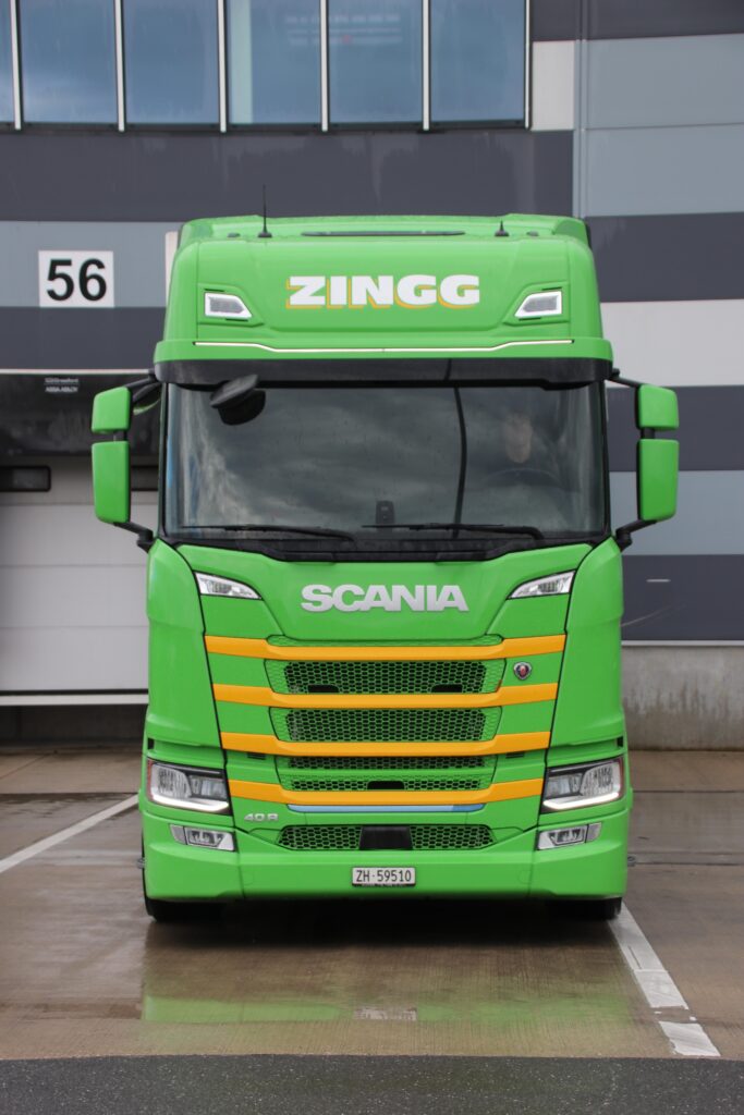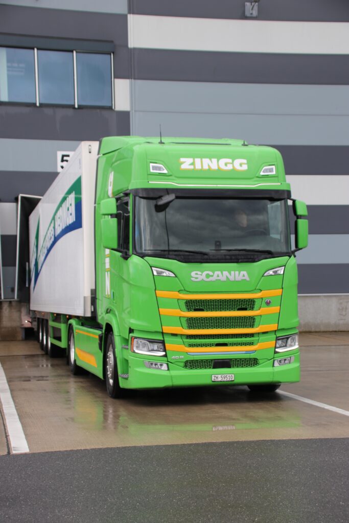 Insgesamt stehen vier schwere, CO2-neutrale Nutzfahrzeuge, im modernen und neu 142 schwere Nutzfahrzeuge umfassenden Fuhrpark der Zingg Transporte AG. 2021 stiess ein erster Wasserstoff Anhängerzug zum Fuhrpark und im letzten Jahr kamen noch eine erste 4×2 Sattelzugmaschine und ein 6×2*4 Solo-Fahrzeug von Volvo hinzu. Mit der Inbetriebnahme der ersten Scania BEV Sattelzugmaschine stiess dann ein nächstes schweres Nutzfahrzeug hinzu, welches im Grossen und Ganzen eine herkömmliche Sattelzugmaschine ersetzen konnte. Dank der hohen Reichweite kann der Scania 40R A 4×2 NB für Liefertouren in der ganzen Schweiz eingesetzt werden, was das Disponieren deutlich vereinfacht.