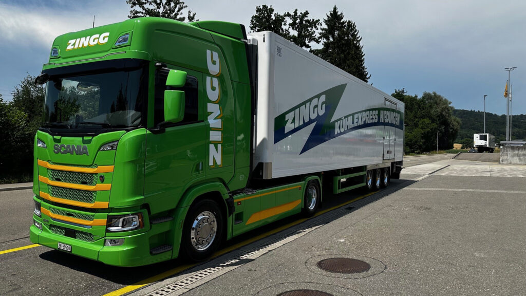 Nicht nur der BEV-Scania verfügt über einen vollelektrischen Antrieb, auch das Kühlgerät an der Stirnwand des Aufliegers wird vom Zugfahrzeug aus rein elektrisch betrieben. Mit dieser Lösung darf man mit grossem Stolz auf ein zu 100% elektrisches NUTZfahrzeug mit 0 % CO2-Ausstoss sein. Ein weiterer Meilenstein in der Firmengeschichte der Zingg Transporte AG und Ihren Bemühungen für einen emissionsfreien Transport.