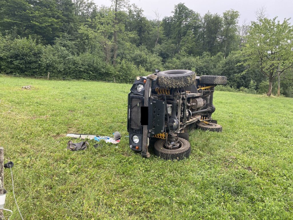 Im losen Strassenbankett begann der SUV zu Rutschen, überquerte schleudernd den