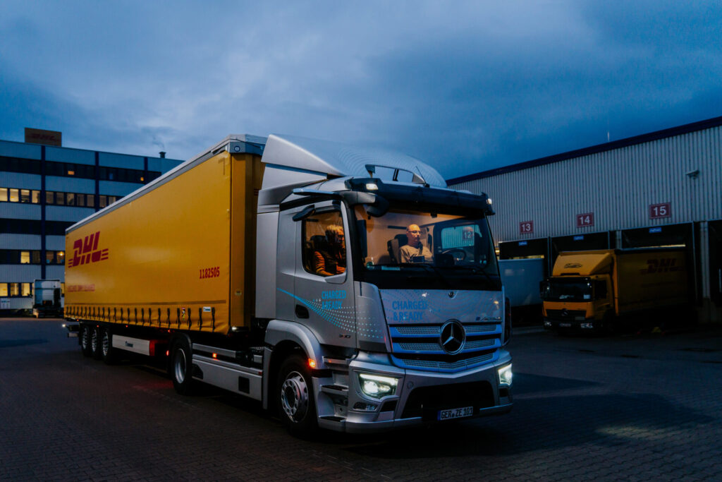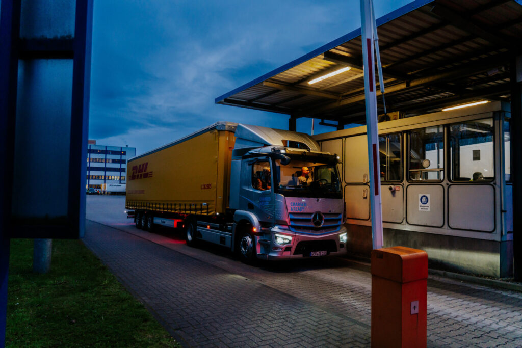 • Mehrtägiger Einsatz der batterieelektrischen eActros 300 Sattelzugmaschine zwischen DHL Freight Terminal in Hagen bei Dortmund und dem Mercedes-Benz Werk Kassel